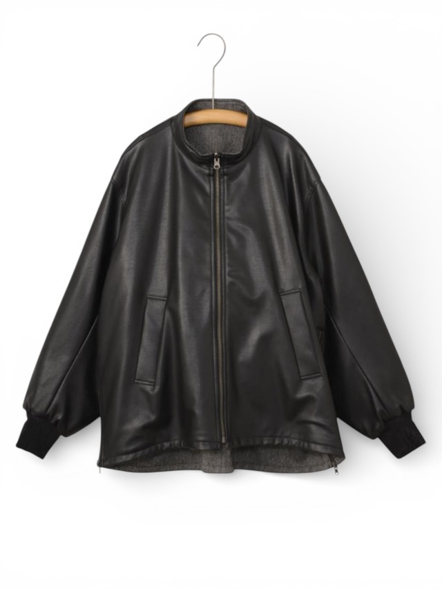<country> <ID> 525318 <material> 表面(etcブラック) ポリエステル 100% 裏面(etcブラック) ポリエステル 100% <color> ETCブラック <size> size : Free[ワンサイズ] バスト132cm 着丈72cm 肩幅49cm 袖丈60cm <model> 女性モデル157cm 男性モデル167cm ーーーーーーーーーーーーーーーーーーーーー リバーシブルのスタンドカラーブルゾン。表面にリアルライクなエコレザーを使用。裏面にはトラッドでウールライクなポリエステルのヘリンボーンを使用し、ライダース感とトラッドを併せて表現しました。袖口は別生地リブ仕様。すっきりとしたスタンドカラーに、サイドのジップがポイントです。後裾のタブでフォルムの変化も楽しんで頂けます。 - SIWALY fluid - シワリーフルイドは2019年 Autumn & Winter collectionにてスタートしたブランドです。 コンセプトはSIMPLE HYBRID。 余計な装飾をしない、飾り立てない。 装飾を最小限にとどめ、素材、カッティング、シルエットを引き立たせた服の中に異なるものを複合させる。 ーーーーーーーーーーーーーーーーーーーーー ※平置きの状態で採寸しておりますので、多少の誤差がある場合がございます。あらかじめご了承ください。また個体差がありますので、若干の誤差が生じます。 ※こちらのアイテムは実店舗と在庫を共有しており、完売の場合もございます。また、発送までに通常よりお時間を頂戴する場合がございます。 ※掲載している写真はお使いのブラウザや環境によって、実物とカラーが異なる場合がございます。あらかじめご了承くださいませ。 ※お客様のご都合による返品はお受けしておりません。ご理解ご了承の上、ご注文くださいませ。