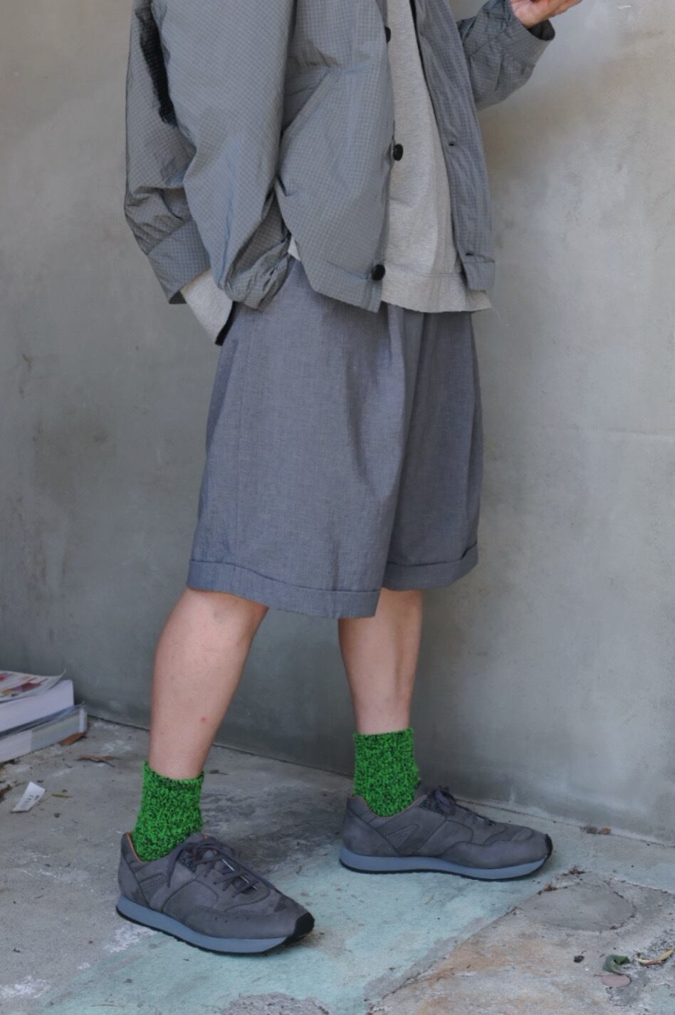 【NO CONTROL AIR】ノーコントロールエアー unisex 強撚ポリエステル・ストレッチポプリンハーフパンツ[Grey top]