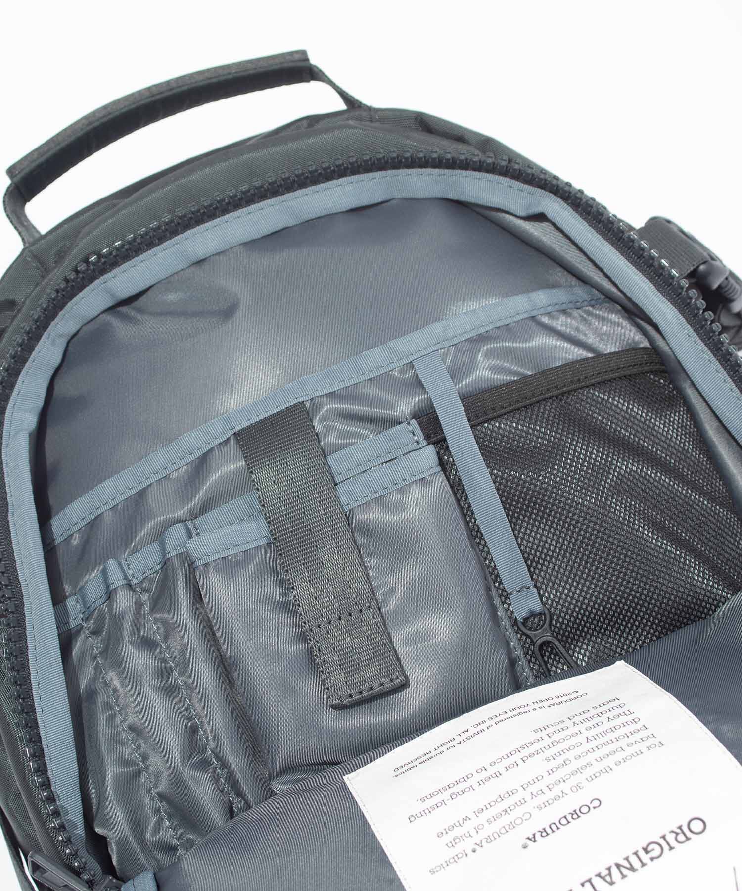 Cordura初の 100% リサイクル ナイロンテキスタイル、Cordurare/cor使用したバックパック。420デニールの糸を使用し、軽量化を実現しながらも、環境へ配慮、強度・耐久性は厳しいCORDURA基準をクリア。