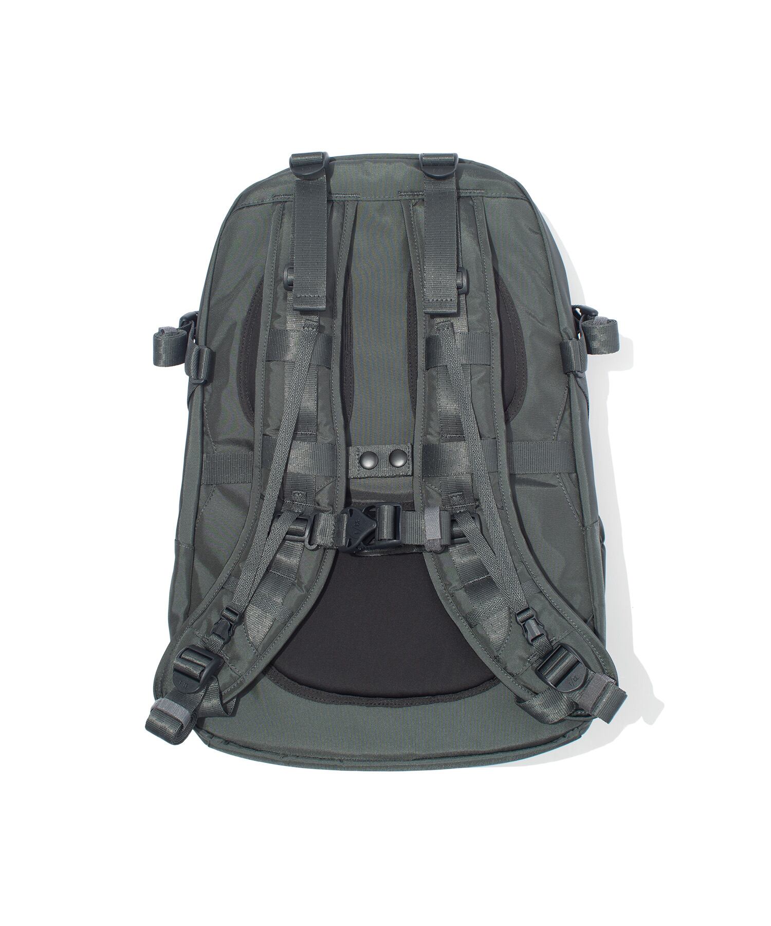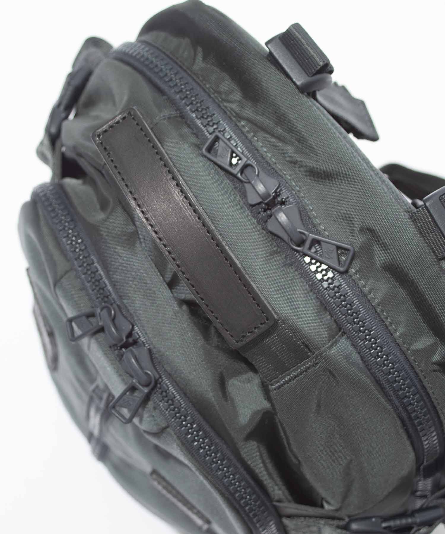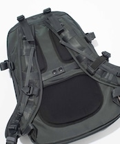 ショルダーにはサコシュや、ポーチなど取り付けられるMOUNTING T SYSTEMを搭載。1泊2日用の旅を想定し設計された33L のデイパックです。フロントにはマルチガジェットポケット装備。背面には15 インチまでのラップトップも収納可能。 テープのロールエンド処理や、肩のカーブに沿うように工夫されたショルダーは、長時間背負っていても疲れにくい設計で、機能と快適さを追求しました。