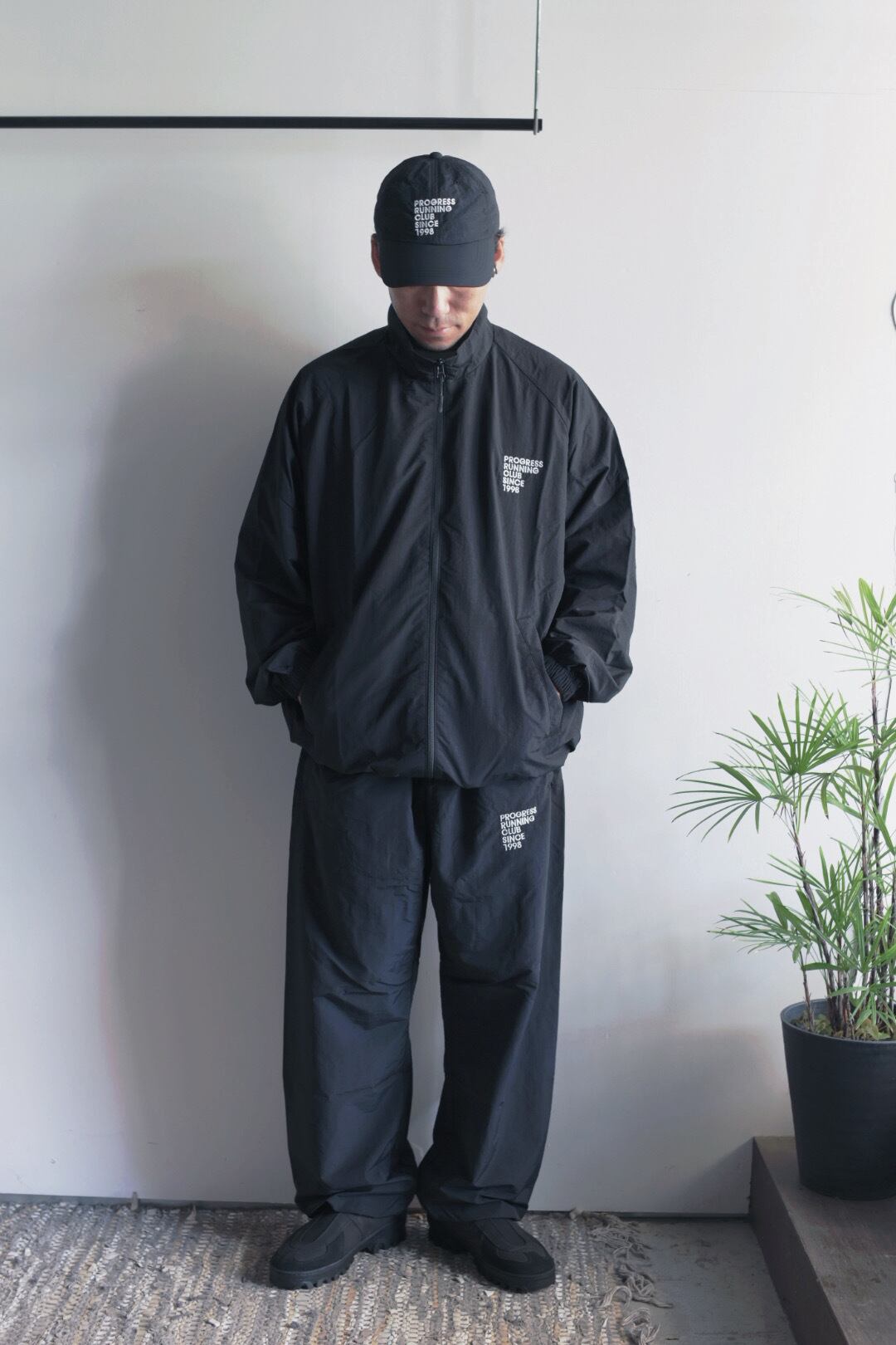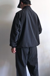 シボ感のあるナイロン素材にシンプルなブランドロゴの刺繍。大きくとられた脇口やゆるめなシルエットはヴィンテージ感のあるサイジング。