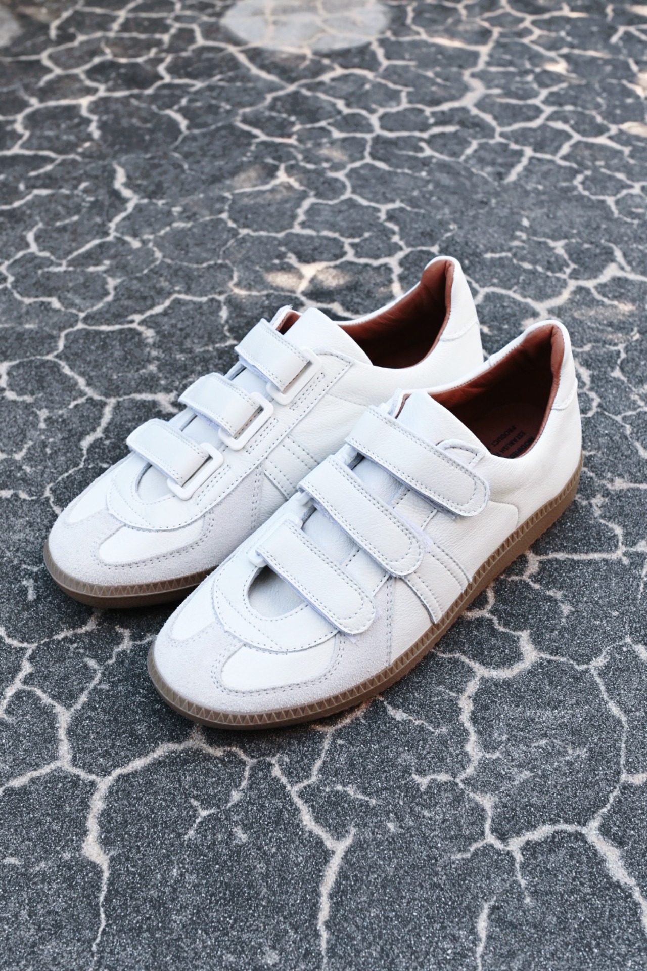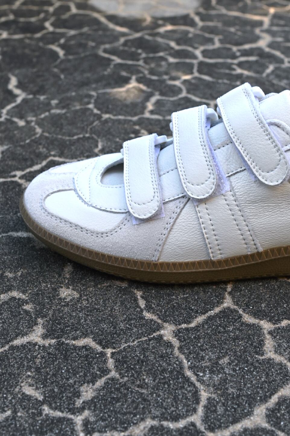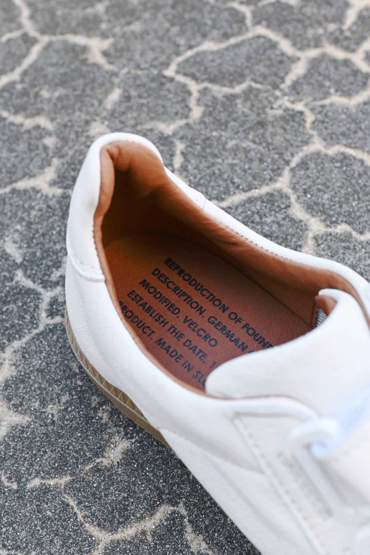 通称”ジャーマントレーナー”をベースに、軍用シューズを生産していたスロバキアのファクトリーに依頼し、ほぼハンドメイドで製作しています。