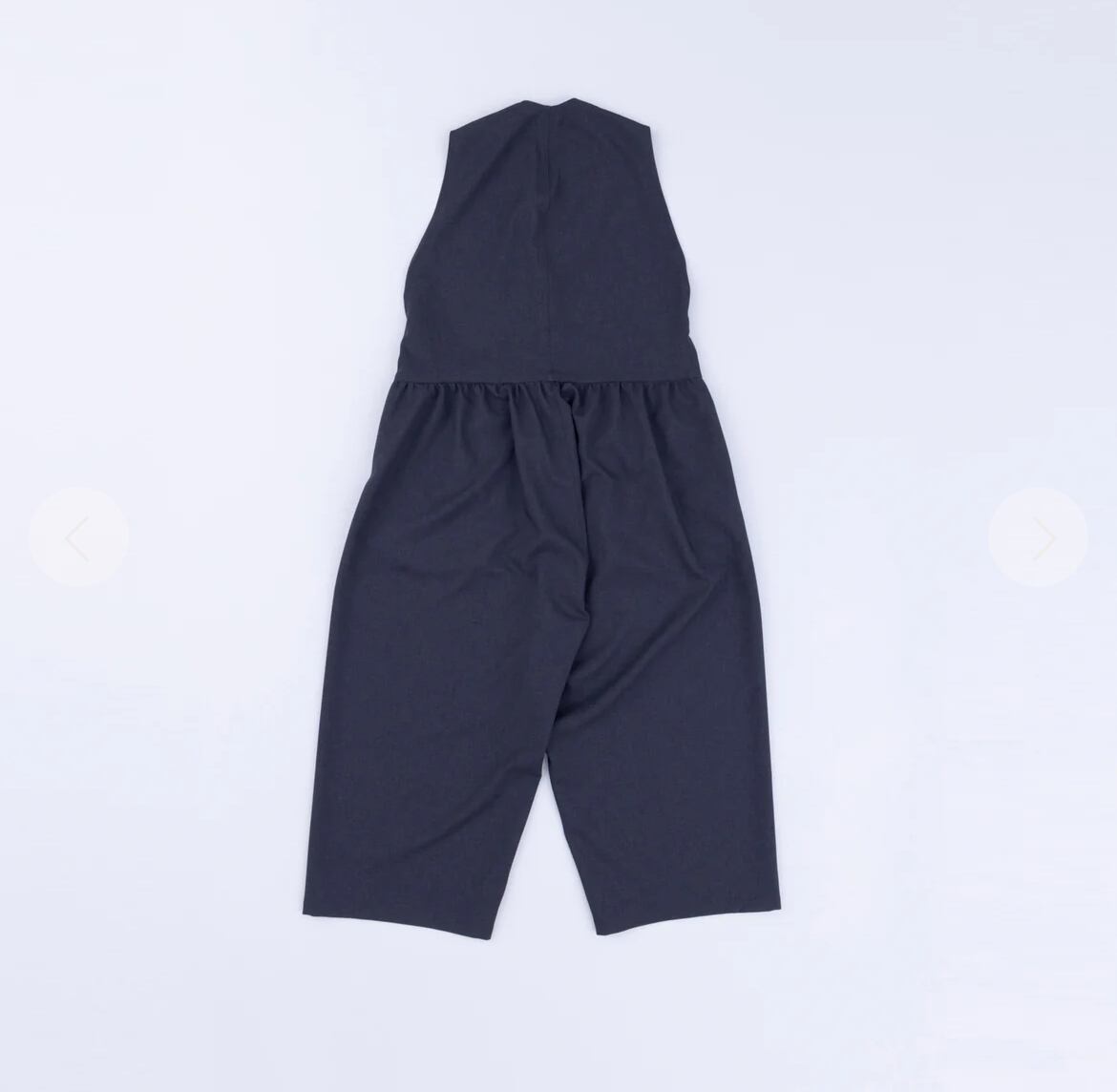 立体感のある独特な表情をもつ「オクタグラムポリエステル」を使用したオーバーオール。マットな質感とランダムな陰影が、無機質でモードな雰囲気を漂わせます。軽量かつシワになりにくく、ドライタッチでオールシーズン快適に着用可能。