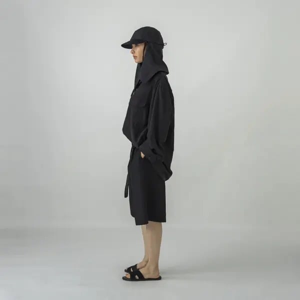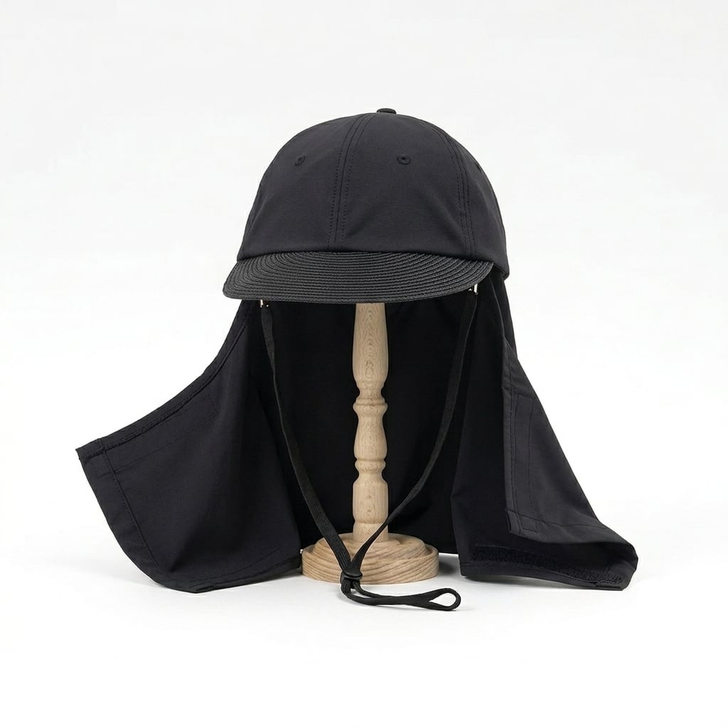 シェードは首の後ろから口元・鼻先までしっかりカバーし、強い日差しから肌を守ってくれる実用性も兼備。