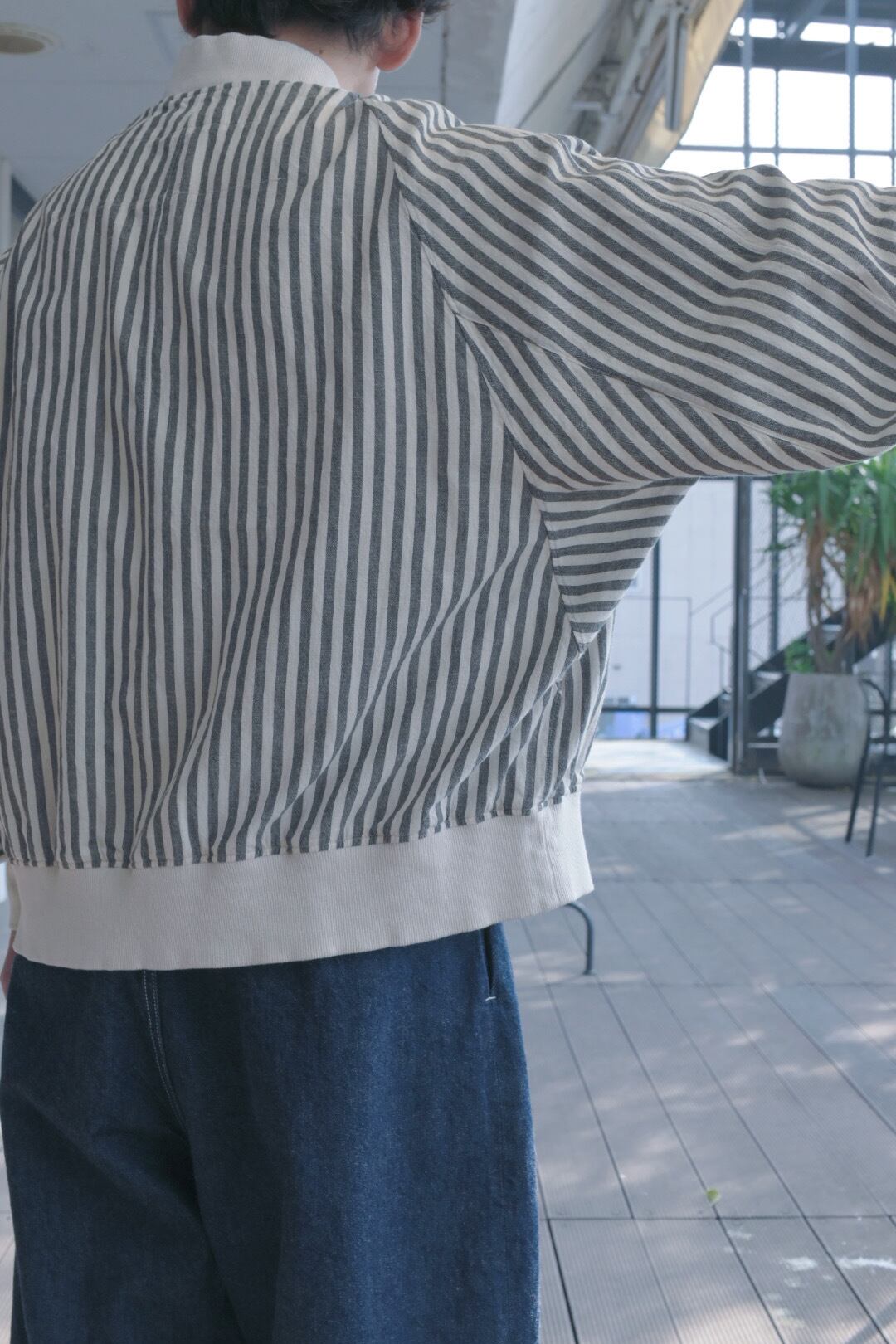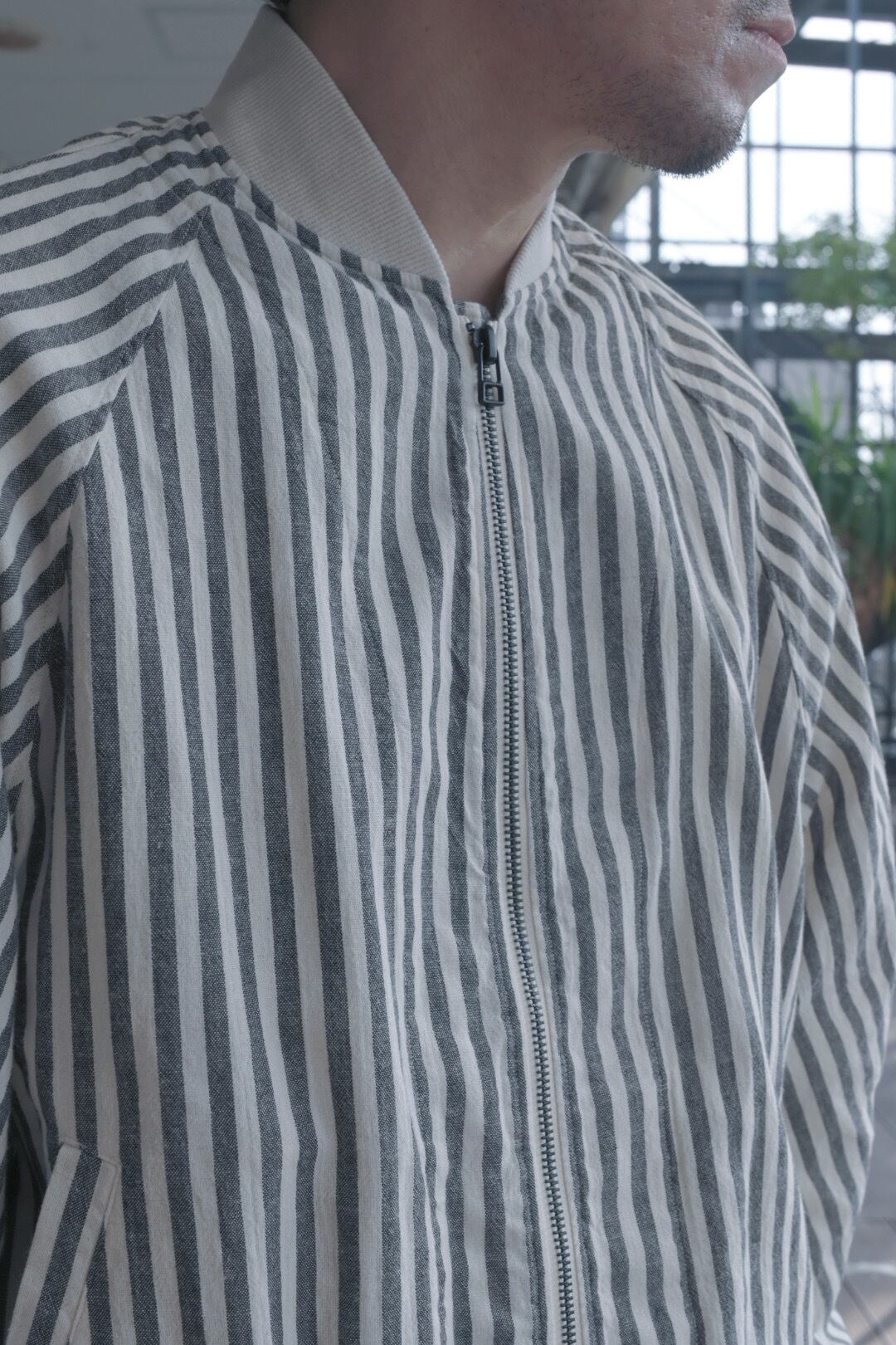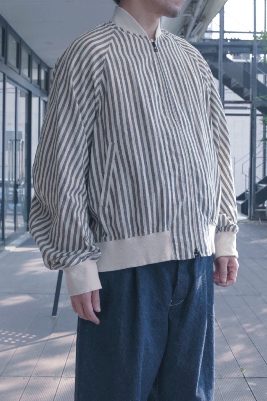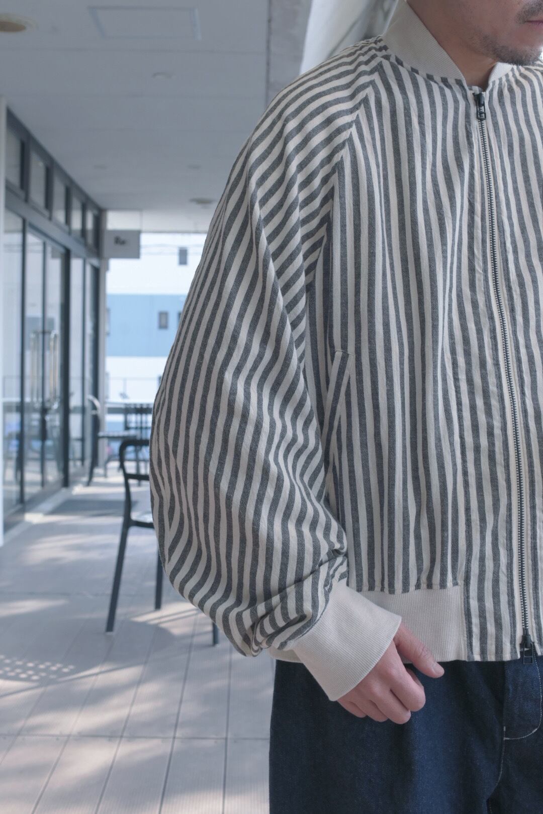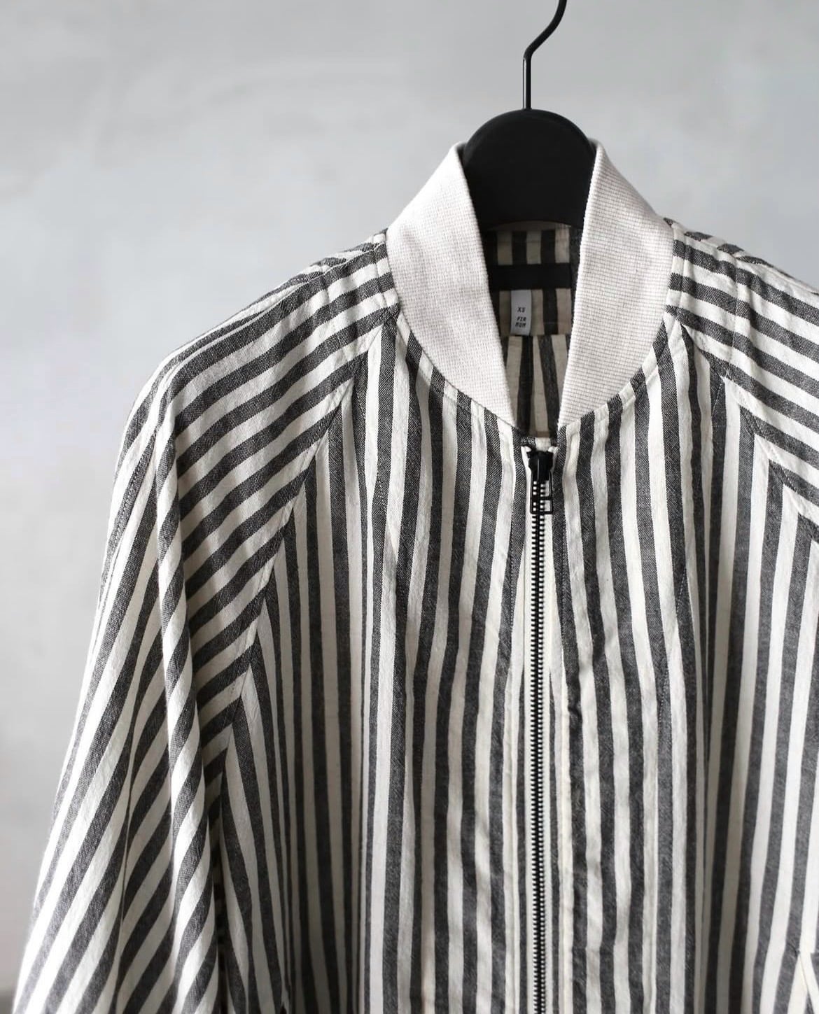 【FIRMUM】unisex ガラシー コットン・リネン / ストライプシーチングビッグスリーブ MA-1[Natural × Black stripe]| ブルゾン