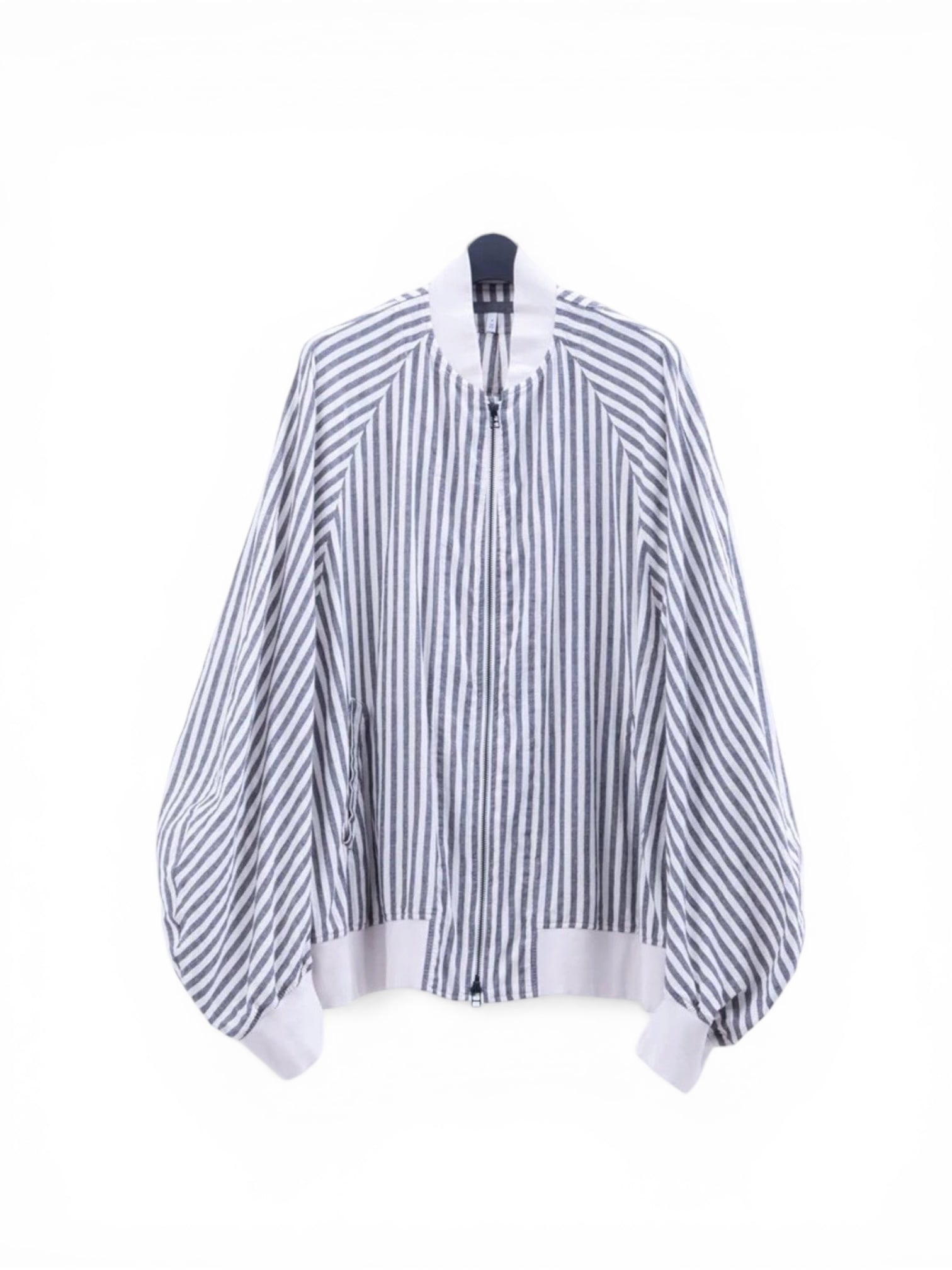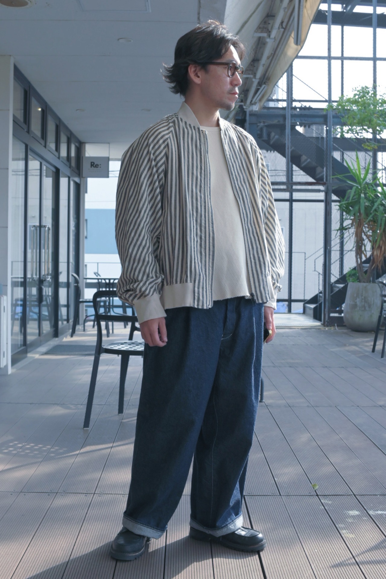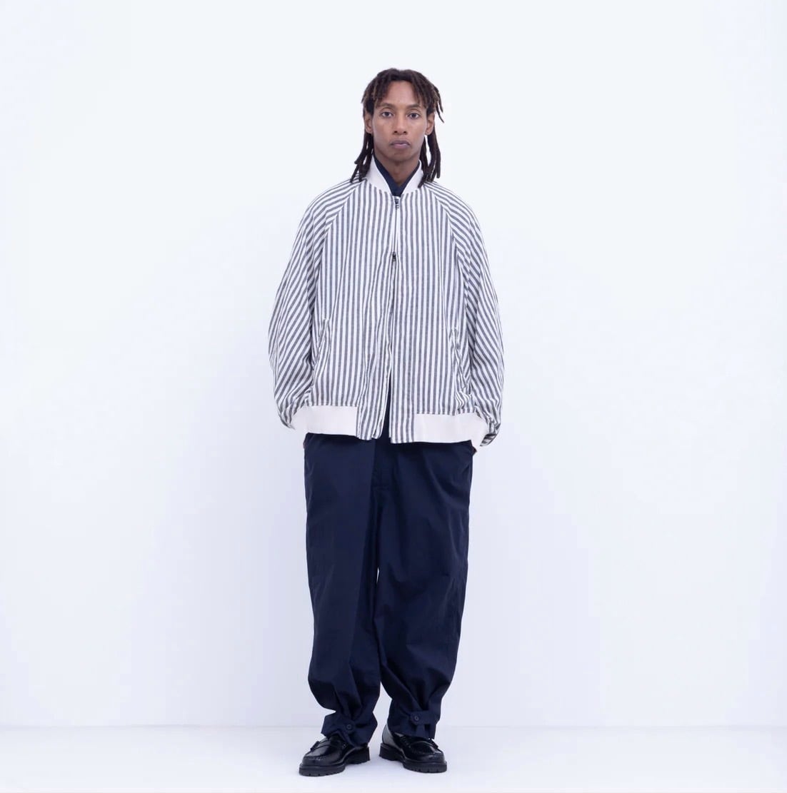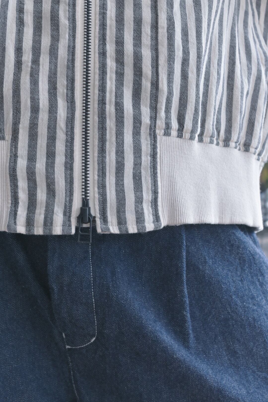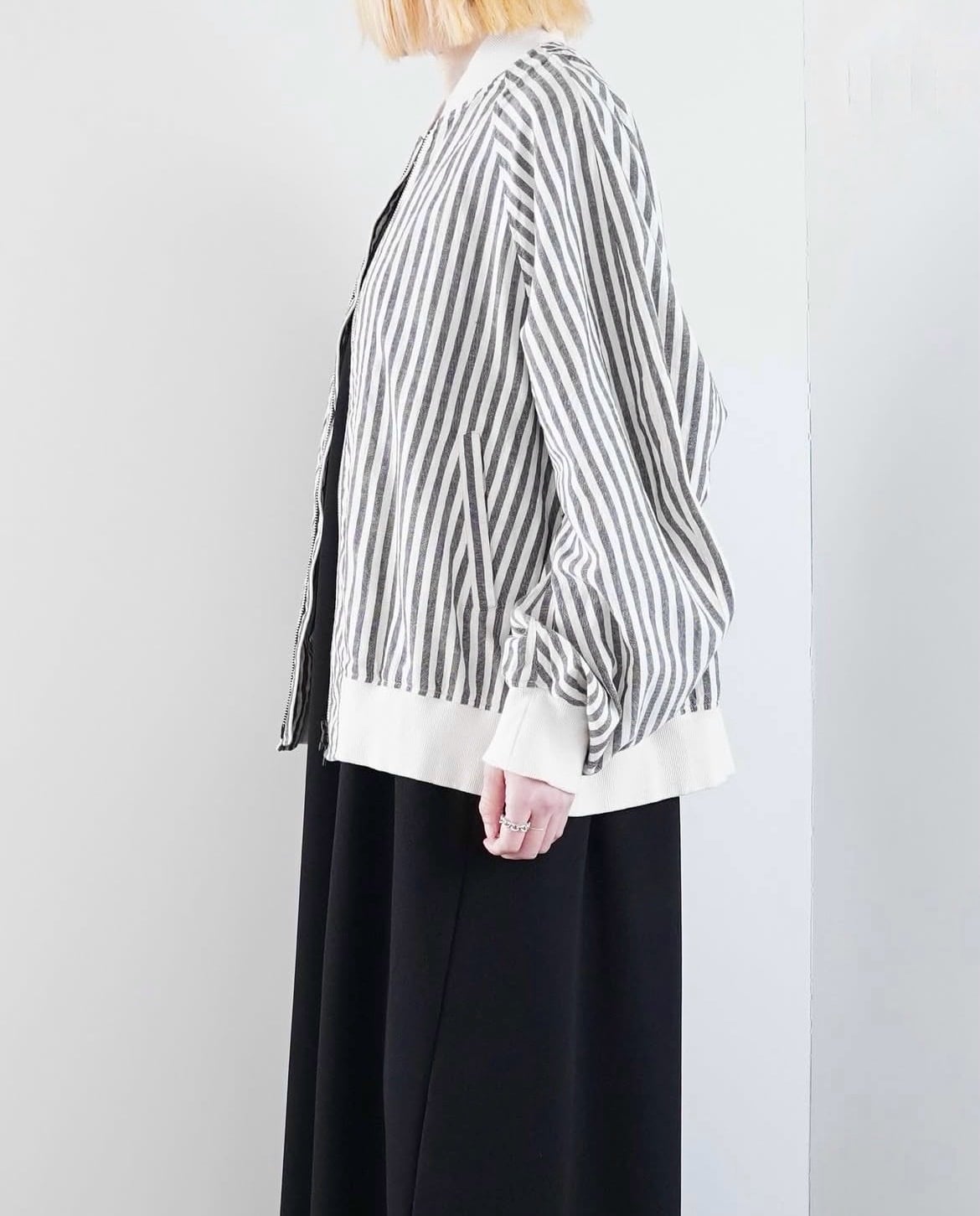 【FIRMUM】unisex ガラシー コットン・リネン / ストライプシーチングビッグスリーブ MA-1[Natural × Black stripe]| ブルゾン