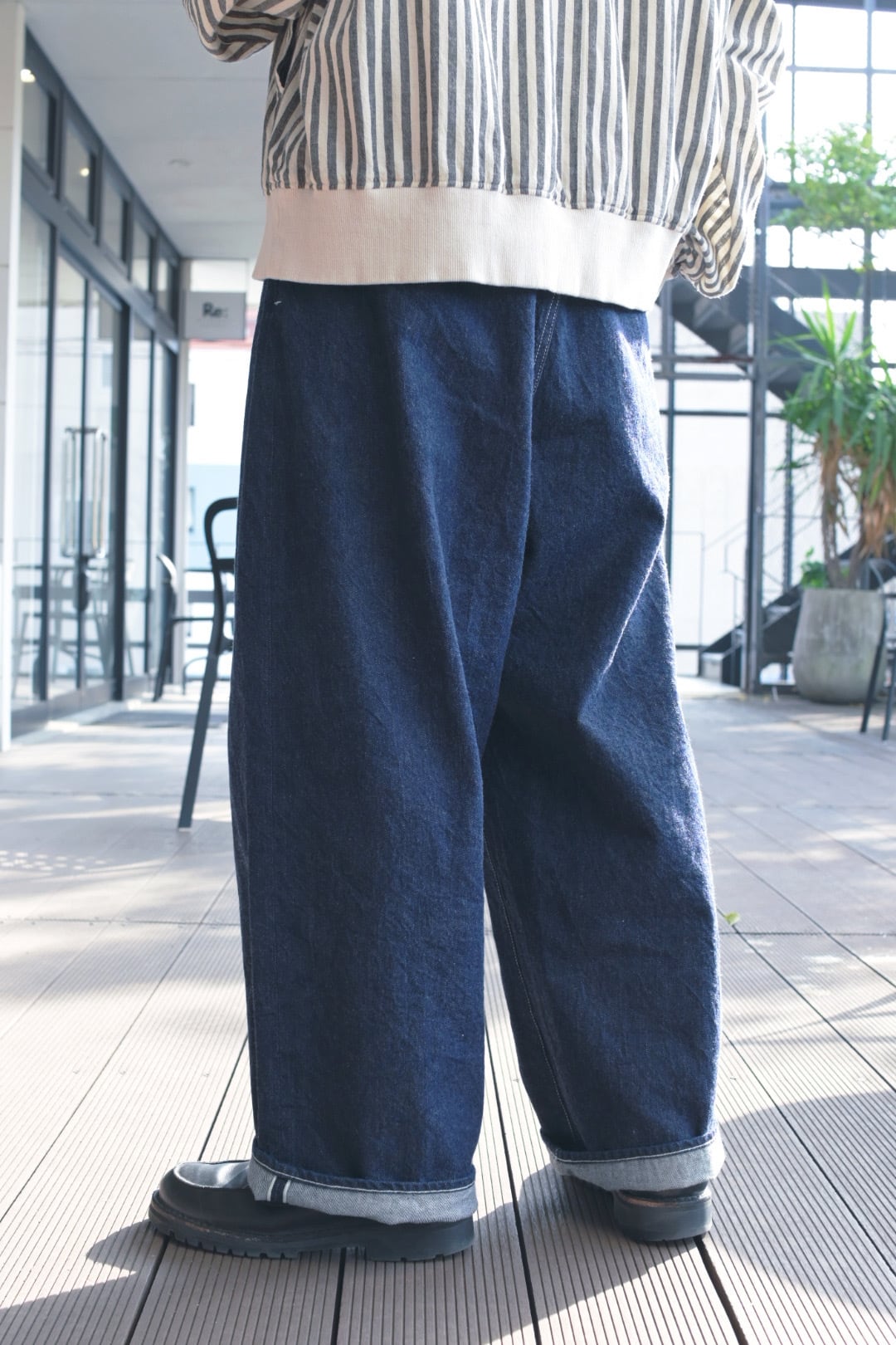 一方でインディゴ染料独特の風合いとアタリによる色合いの変化もインディゴ染めの醍醐味ですので、ぜひ履き込んで経年変化をお楽しみください。