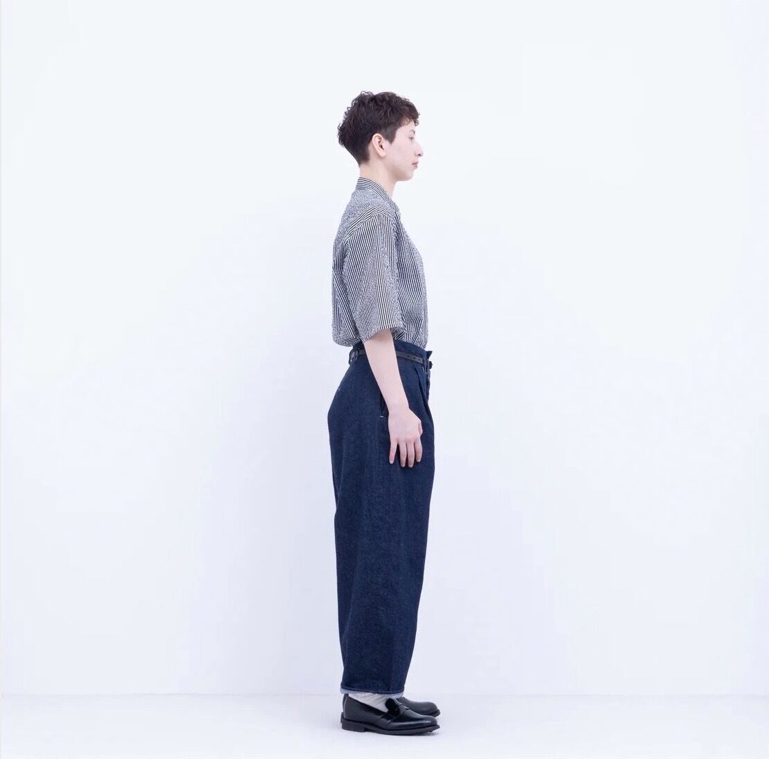 シルエットはワイドストレートで、ヒップ周りにゆとりを持たせたリラックス感のある形。フロントのワンタックが程よい立体感を生み、ラフすぎず、どこか整った印象に。