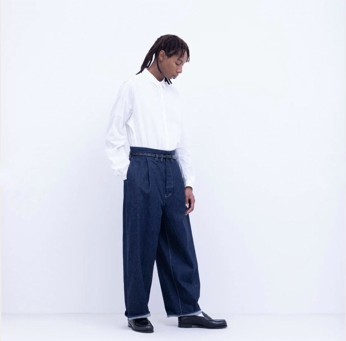 【FIRMUM】unisex コモンデニム インディゴコットン・コモンセルビッチデニム | ワンタック セルビッチ ジーンズ[Indigo]| ワイドデニム