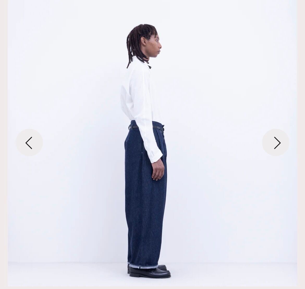 この商品はインディゴ染料を使用しています。インディゴ染料は淡色のお洋服などに色移りする場合がありますので、ご着用時やお洗濯の際はご注意ください。