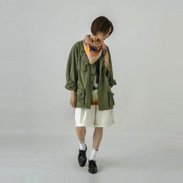 派手そうに見えますが、ハンドプリントなので意外にもどんなコーディネートにもしっかり合います。
