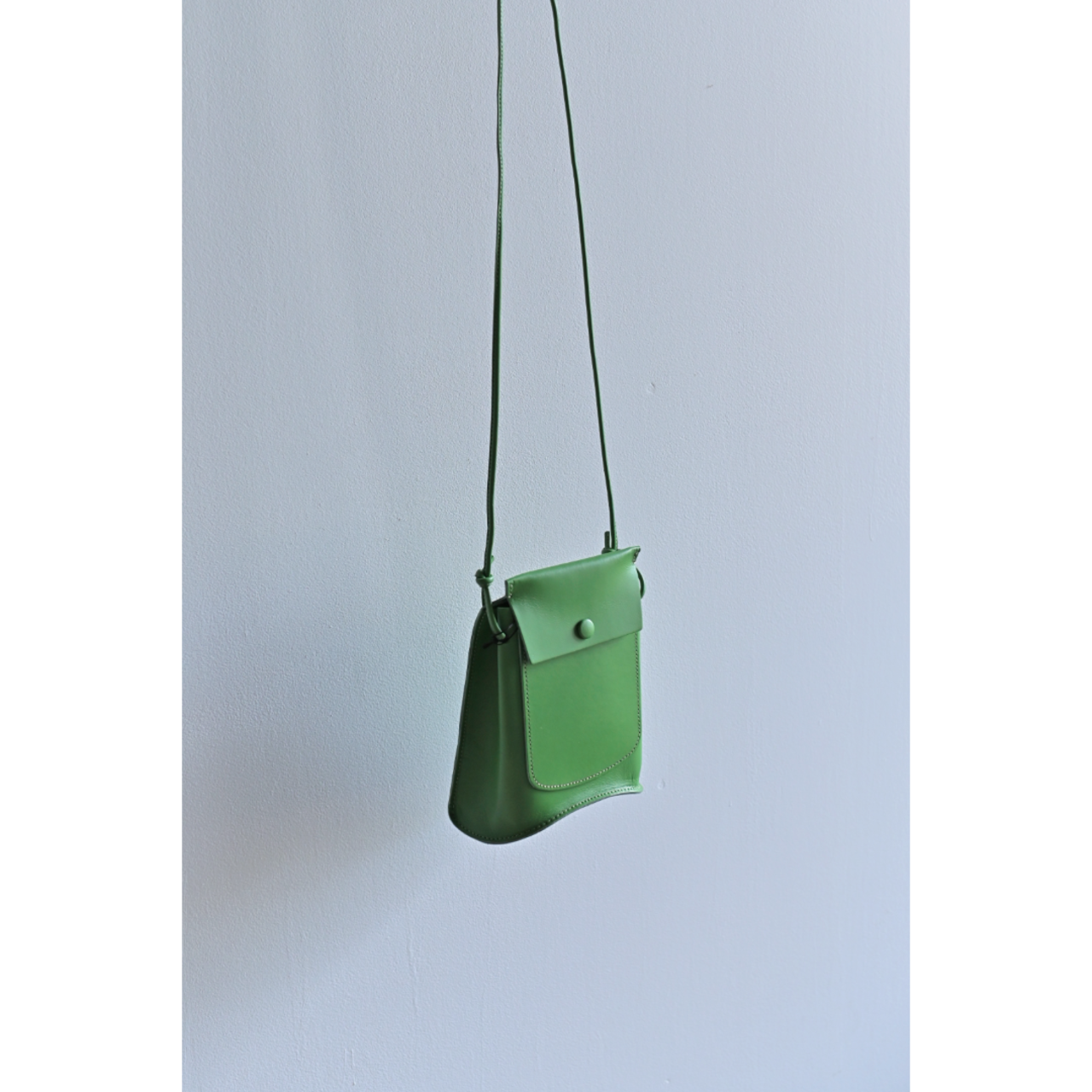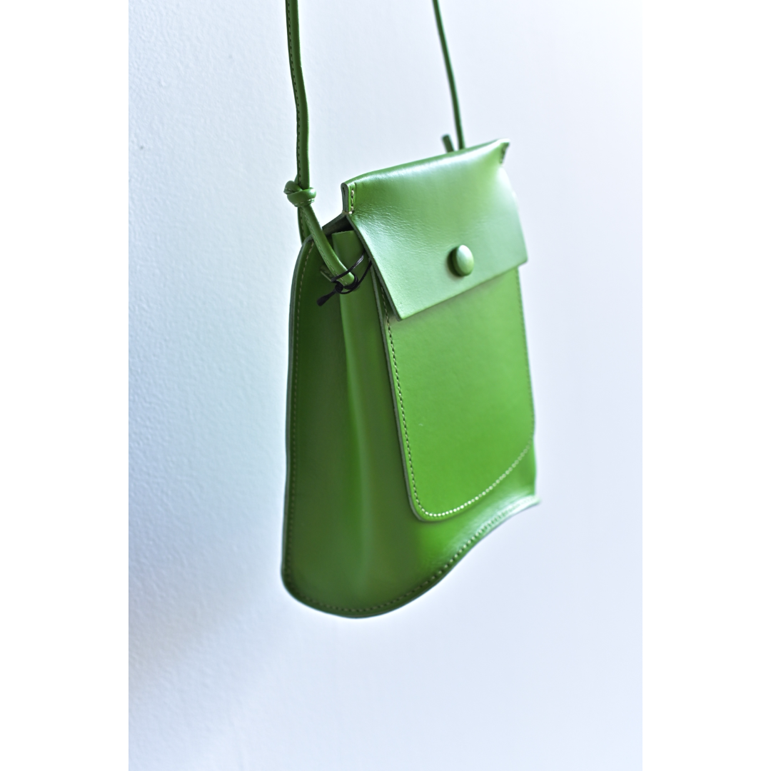 曲がった底マチのシルエットが特徴的なミニショルダー。