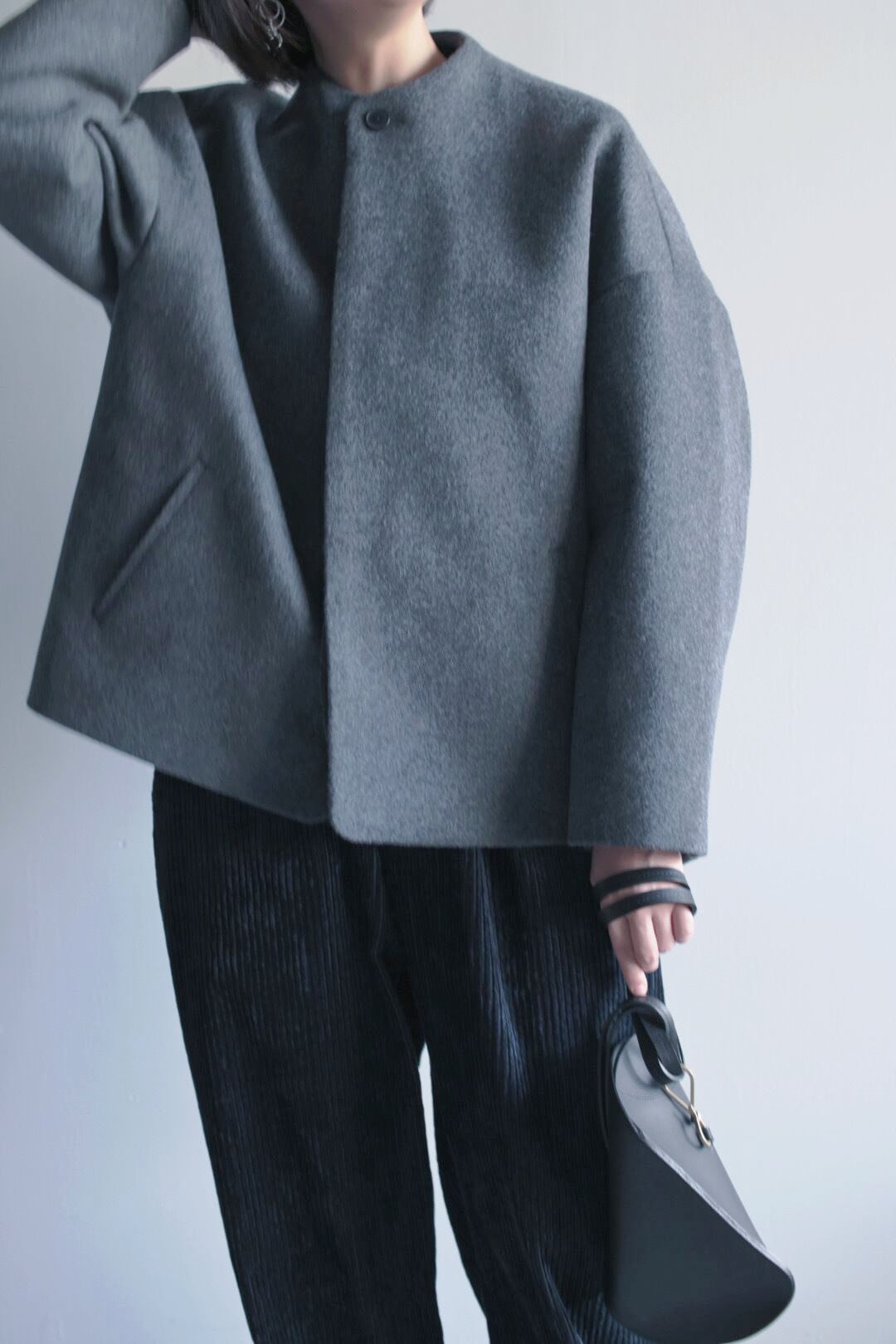 【NO CONTROL AIR】Lady's スーパー100's ウール・ショートビーバーボトルネックブルゾン[Grey top]