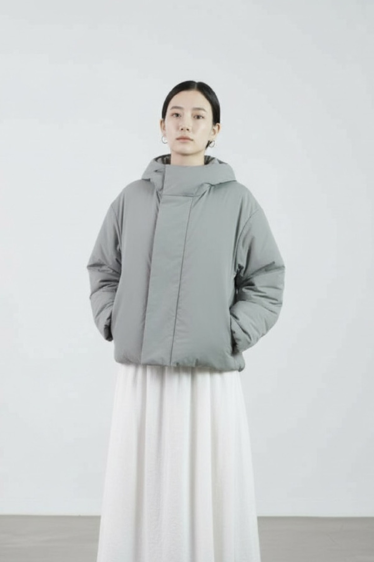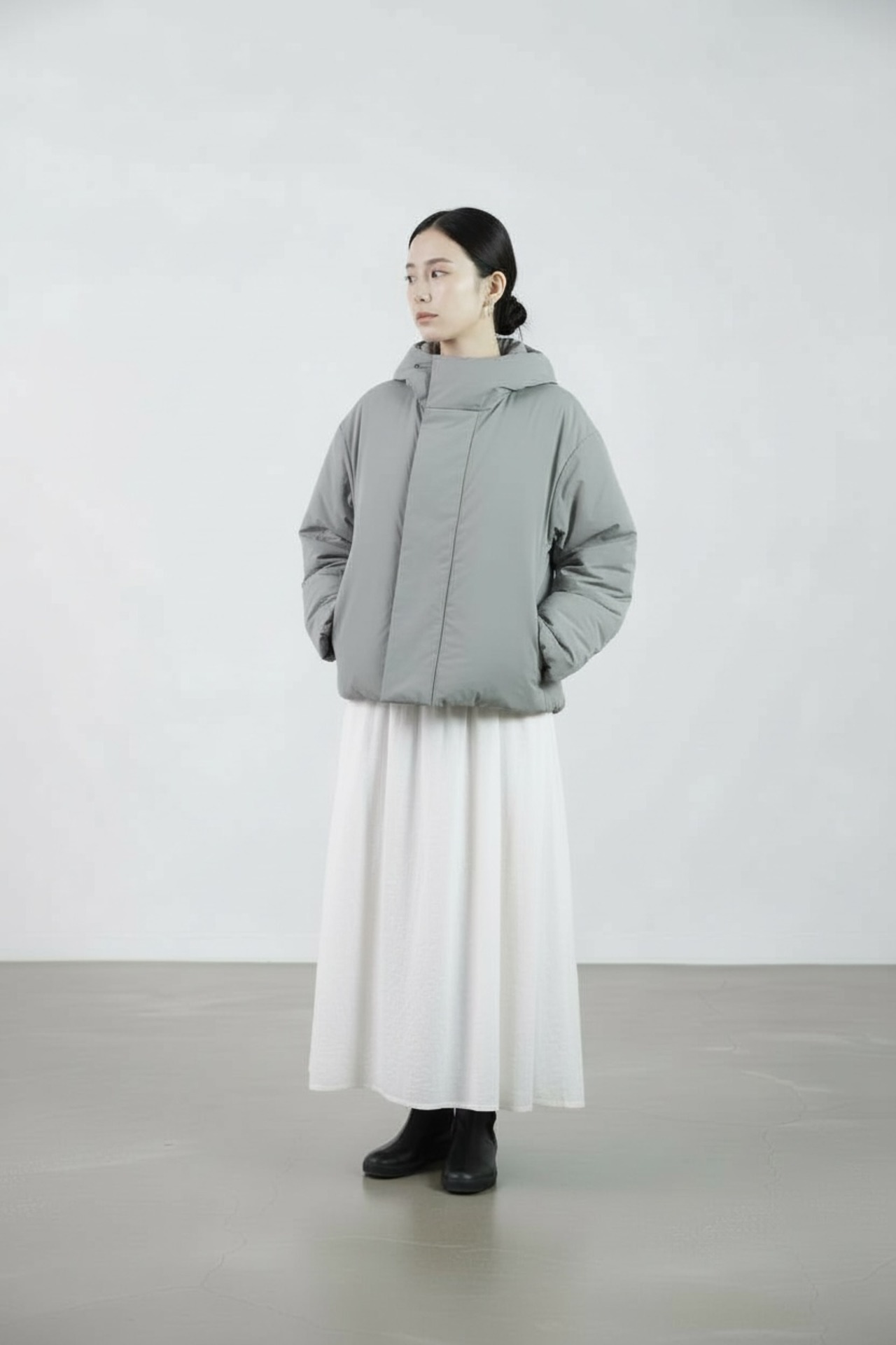シンプルで余計なものを削ぎ落とした洗練されたデザイン。高級感のある落ち着いた雰囲気のダウンジャケット。新色のミリタリーライクなセージグレーのカラーリングも魅力。