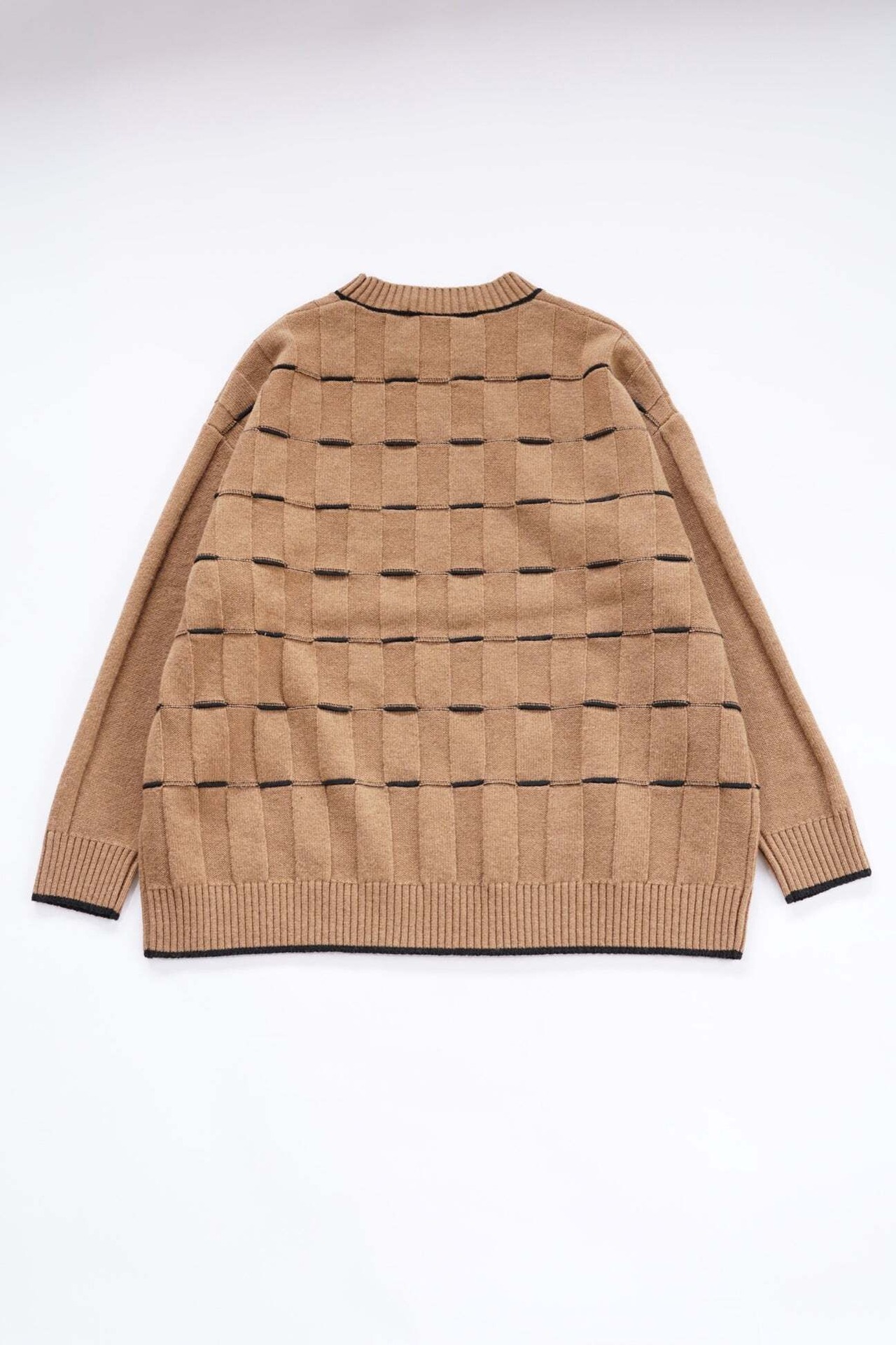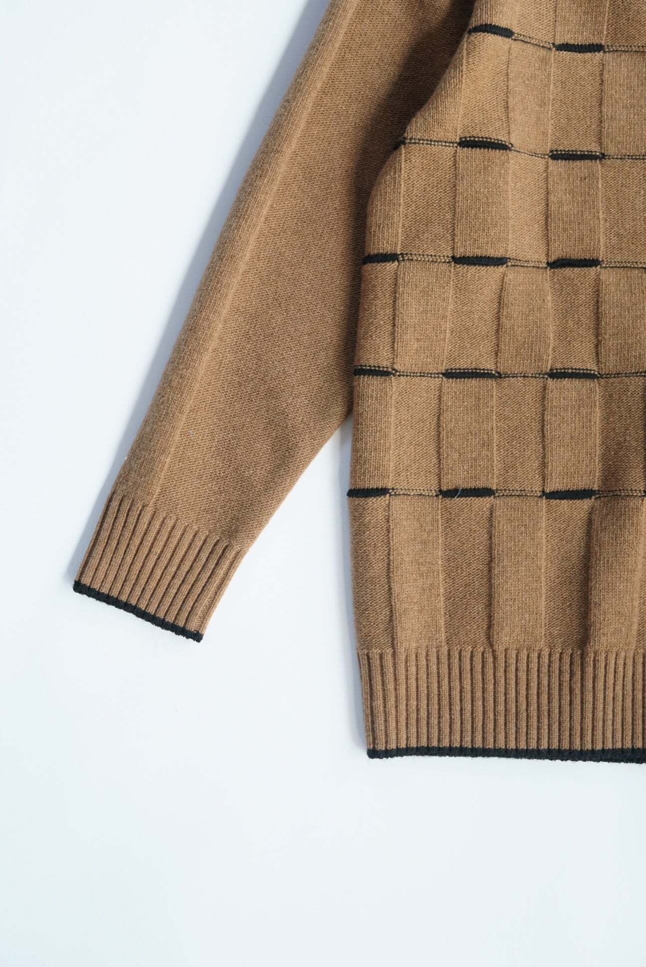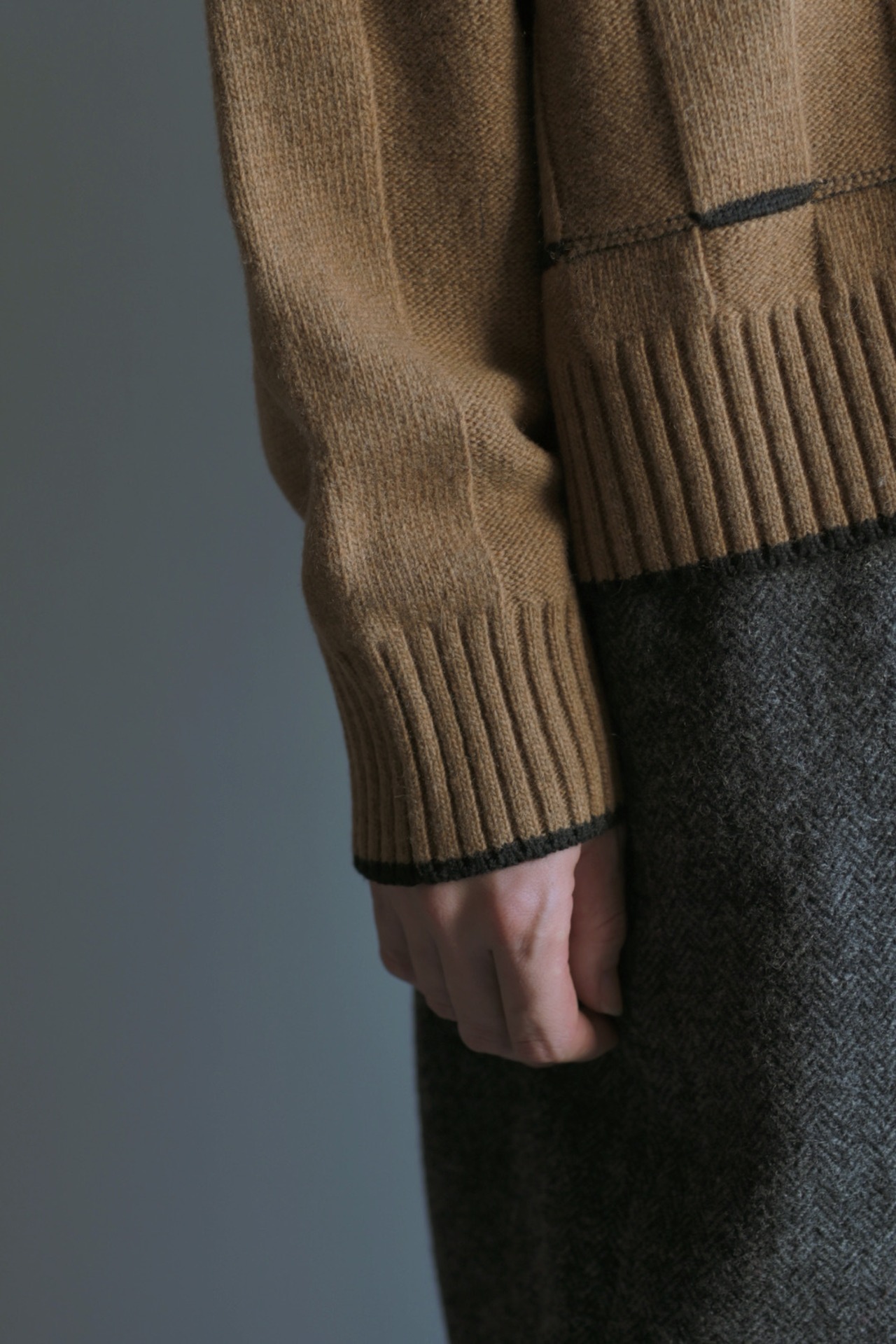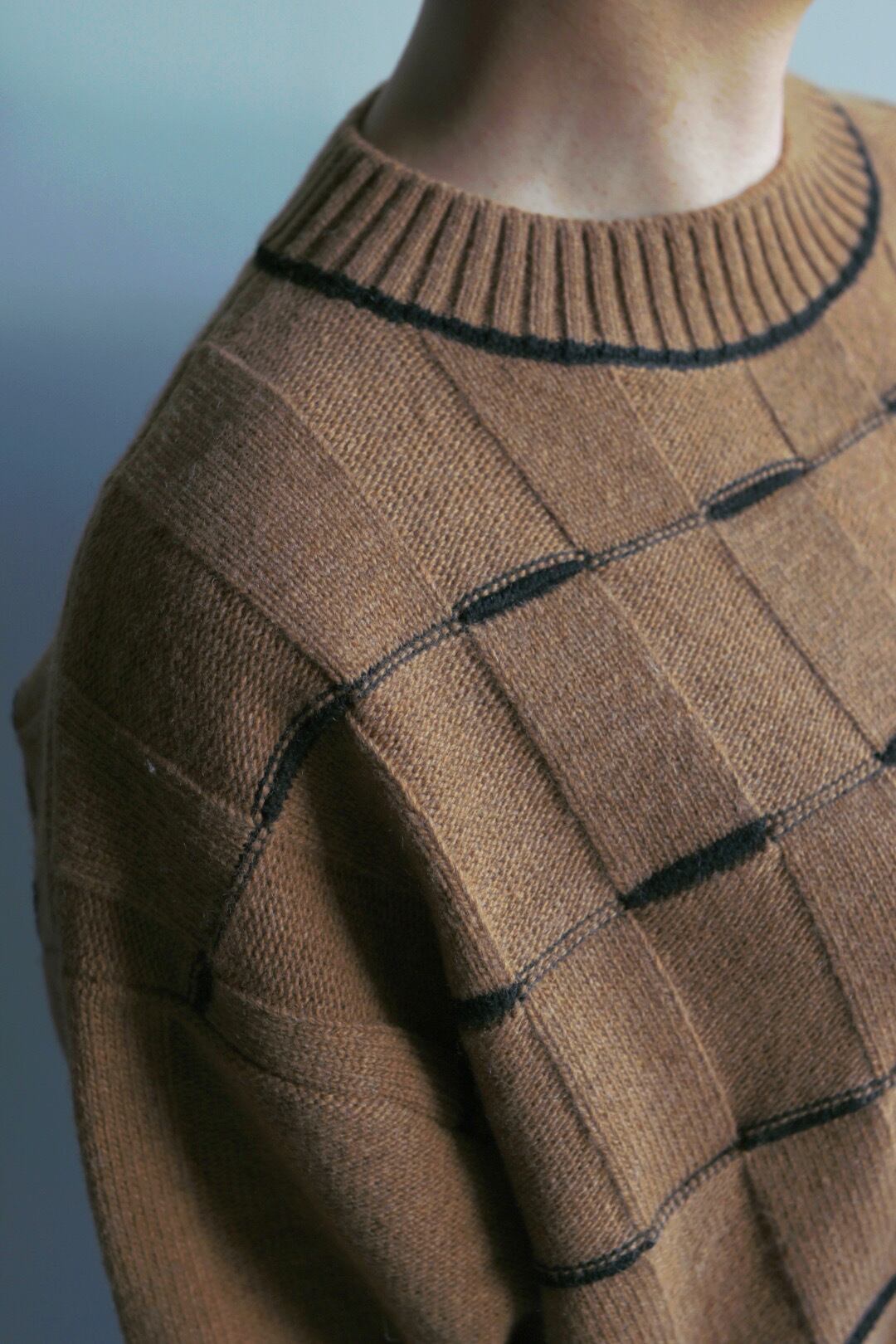 映像を編集する画面のタイムラインをイメージした模様入りのニット。