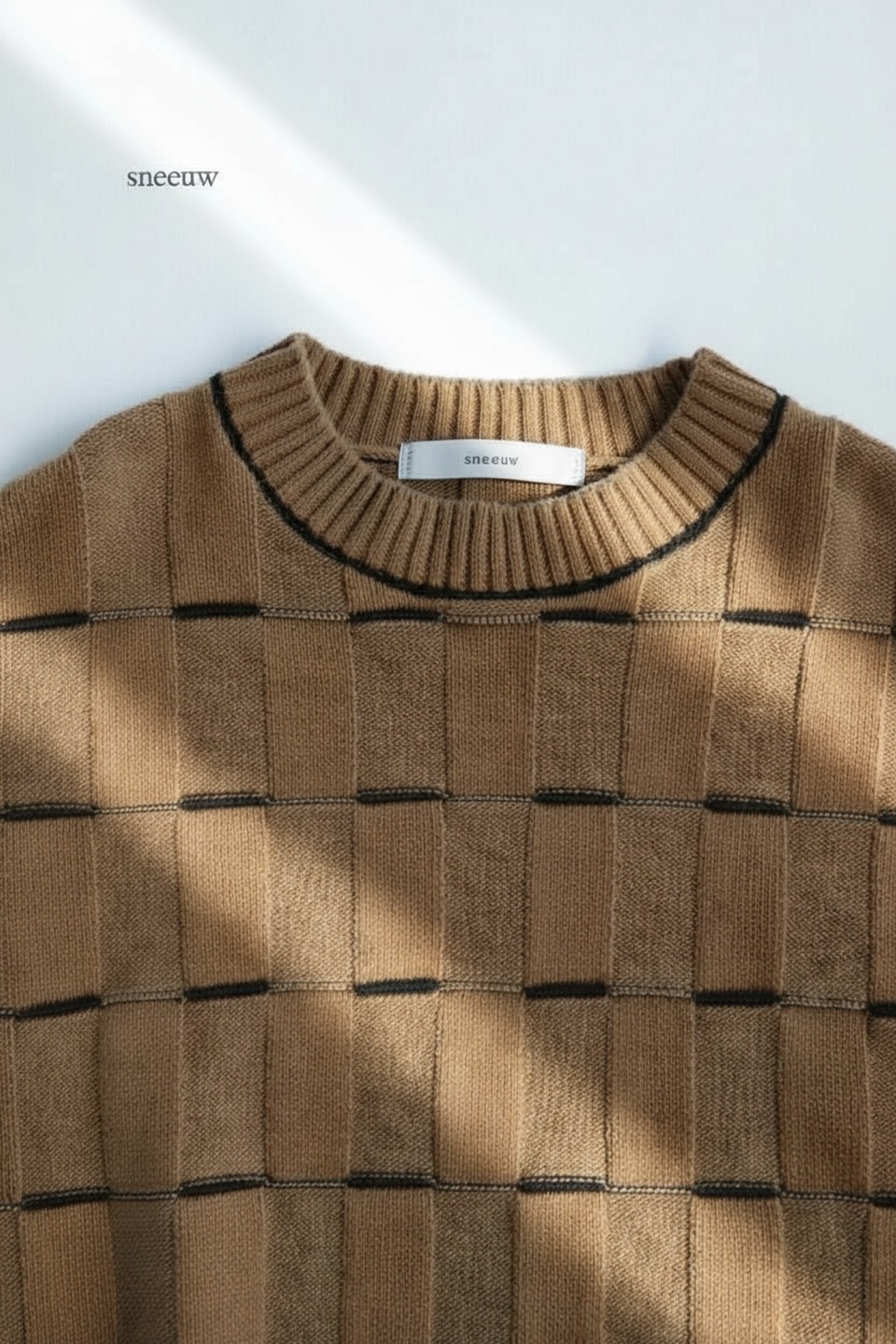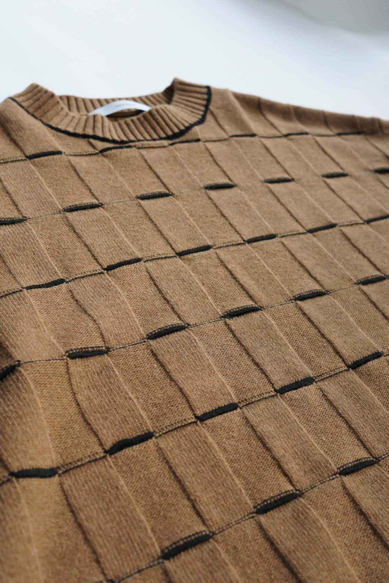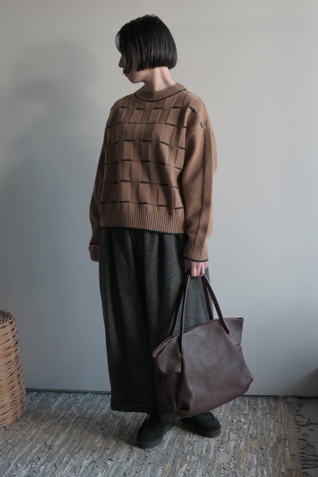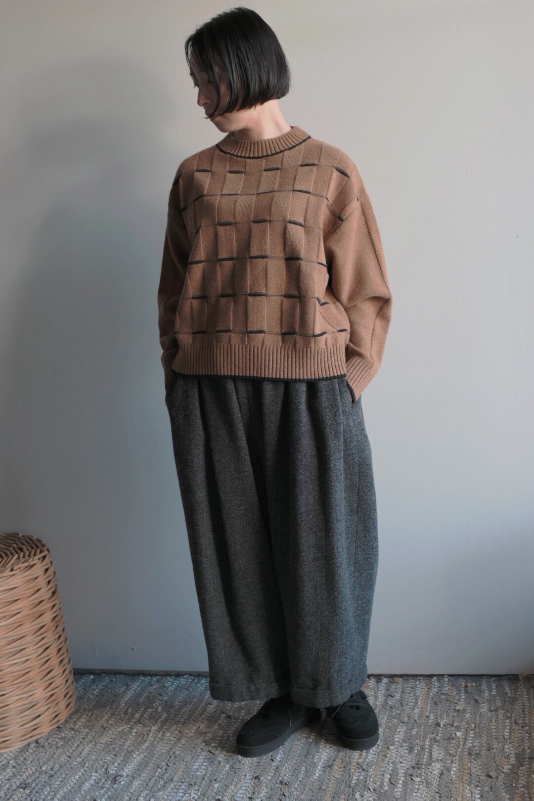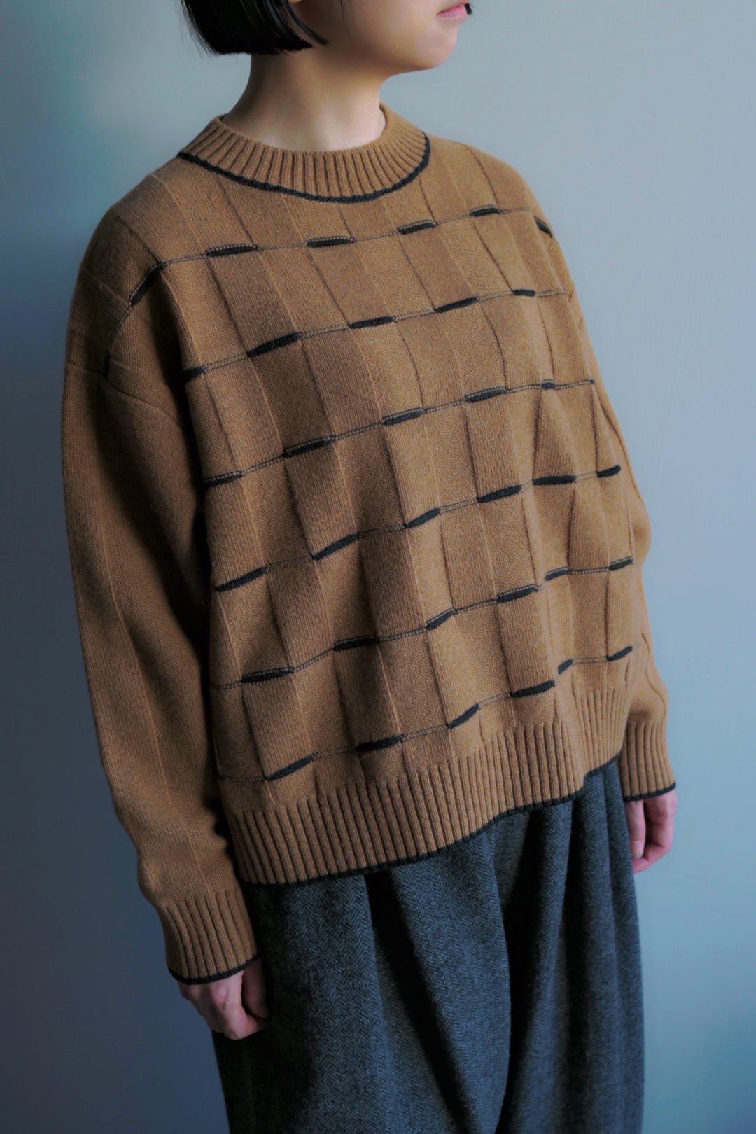 映像を編集する画面のタイムラインをイメージした模様入りのニット。