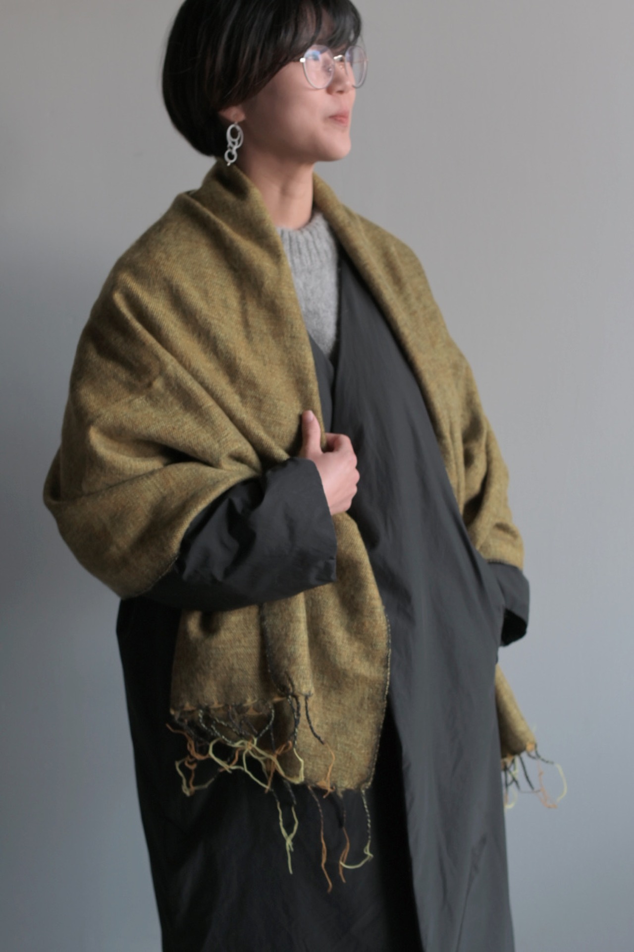 アクリルとコットンを使用した大判のストール。