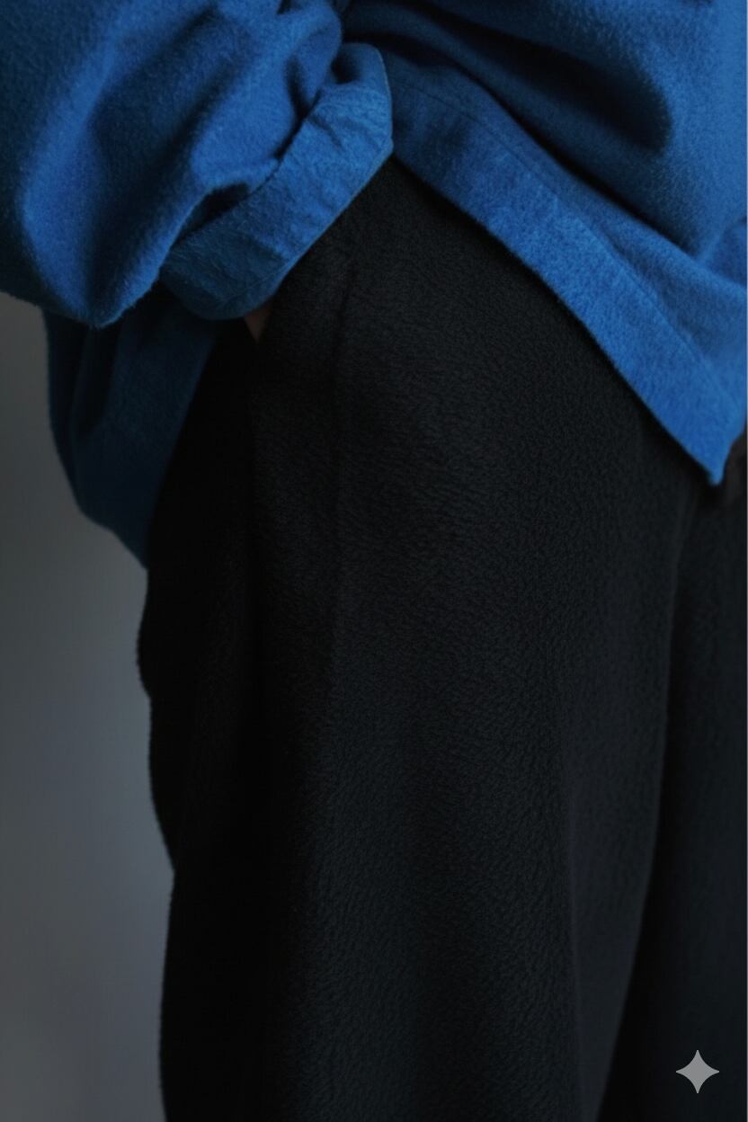 - フリース素材の特性 - このフリース素材は、優れた保温性と軽量性を兼ね備えています。寒い日でも心地よく快適に過ごせるよう設計されており、デイリーユースにぴったりです。特殊な加工により、柔らかさと軽さが生まれ、動きやすさも確保されています。