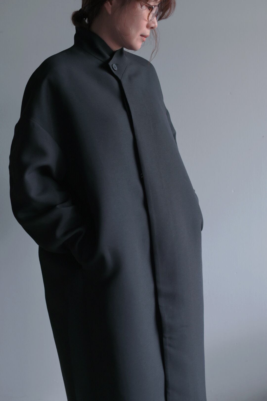 シンプルでありながら着物のような襟のデザインが特徴的です。